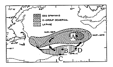 Figure 1: Locations on Georges bank where larvae were modeled. (Figure modified from Laurence and Lough, 1985).