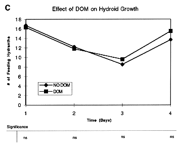 (Figure 1C), although the trend was clearly towards a divergence. A comparison of the number of budding hydranths, however, showed a statistically significant difference between treatments on days 2-4