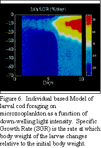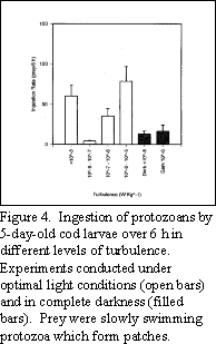 Figures 4 and 5, ingestion by larval cod in the dark was virtually